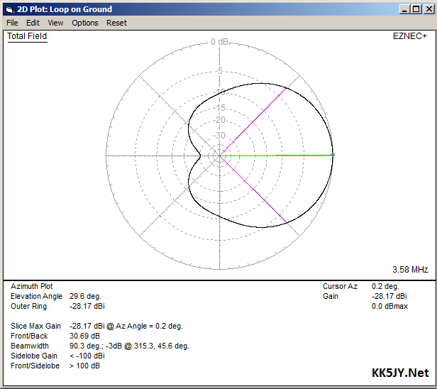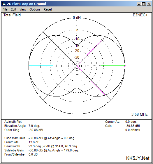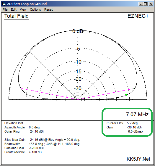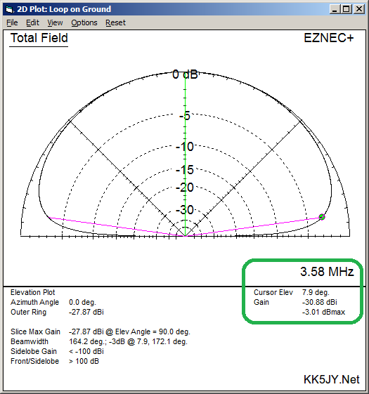 Através de extensiva modelagem em EZNEC, foi descoberto que o melhor padrão de DX, com o ângulo de elevação -3dB mais baixo possível, é obtido quando o comprimento total do lado do loop é aproximadamente 15% do comprimento de onda alvo da banda operacional.