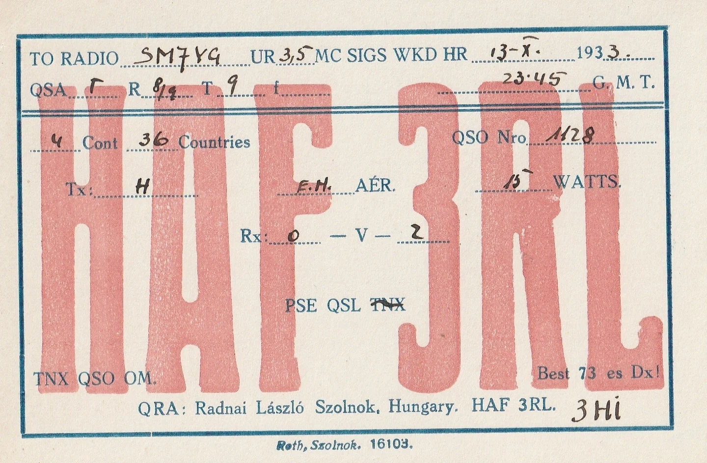 Radnay começou no rádio ainda jovem: segundo relatos, já em 1928 estava no ar usando um indicativo autodeclarado. Ao longo do tempo, foi uma figura importante na formação da comunidade local — chegou a contribuir para o início da Hungarian Radio Amateur Association. Sua atividade nas ondas e a emissão de cartões QSL documentaram décadas de contatos e participação ativa entre radioamadores.