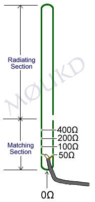 Ambas as antenas são, na verdade, dipolos de meia onda alimentados pela extremidade. O termo “dipolo” refere-se aos dois polos elétricos (positivo e negativo) presentes em cada meio ciclo da onda, e não a dois elementos físicos. A seção de casamento de quarto de onda (λ/4) em forma de J é o que permite alimentar o dipolo de meia onda de um ponto de alta impedância (típico de antenas alimentadas pela extremidade) e casá-lo com o cabo coaxial de 50Ω [1].