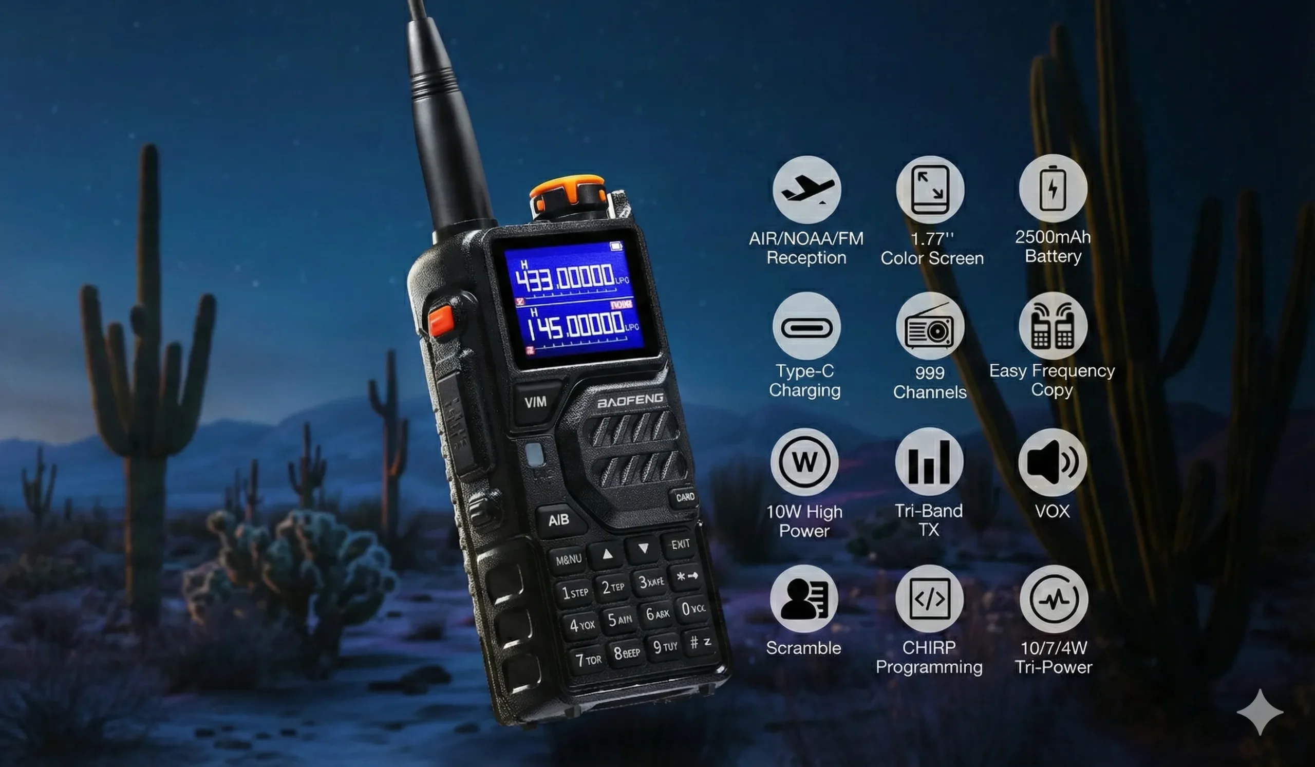 Em resumo: o Baofeng K5+ é uma atualização consistente para quem busca um rádio portátil mais completo, robusto e flexível para uso em campo e em contingência.