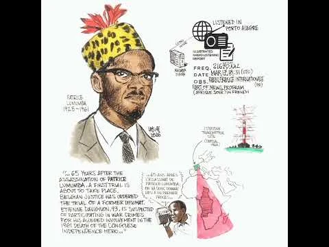 A RFI noticiou que o ex-diplomata belga foi enviado a julgamento no contexto de investigações sobre o assassinato de Patrice Lumumba, líder congoleses dos anos 1960. A cobertura foi captada por ouvintes de rádio de ondas curtas e registrada por Latuff, que transformou a escuta em material gráfico e relato.