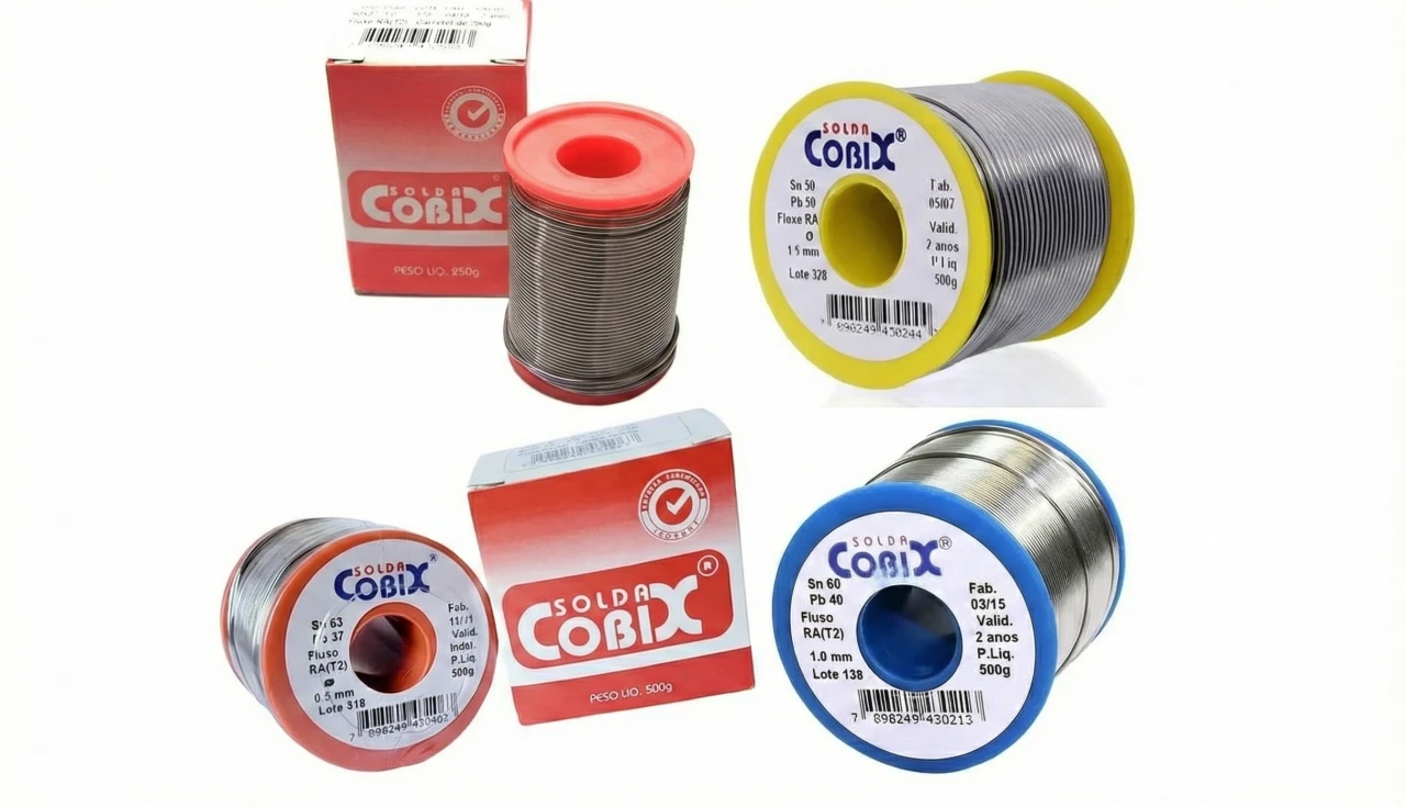 Ao escolher fio de solda, muita gente olha apenas o diâmetro ou o preço e ignora um detalhe que faz diferença no resultado: a cor do carretel. Em algumas fabricantes — como a Cobix — a cor não é estética; ela indica o tipo de fluxo inserido no miolo do fio, responsável por limpar a superfície e melhorar a aderência da solda. Entender esse código de cores ajuda a evitar falhas, reduzir retrabalho e garantir maior vida útil às placas eletrônicas.