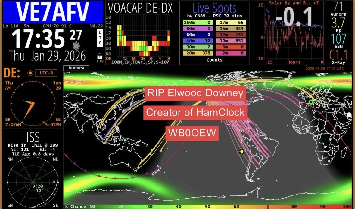 O software HamClock, popular entre radioamadores e distribuído em mini‑PCs prontos para uso, foi declarado em fim de vida no site do projeto. A mensagem publicada na página oficial diz: “HamClock has reached end-of-life, the last release is version 4.22. All HamClocks will cease to function in June 2026. Thank you for your interest. Elwood Downey, WB0OEW”.