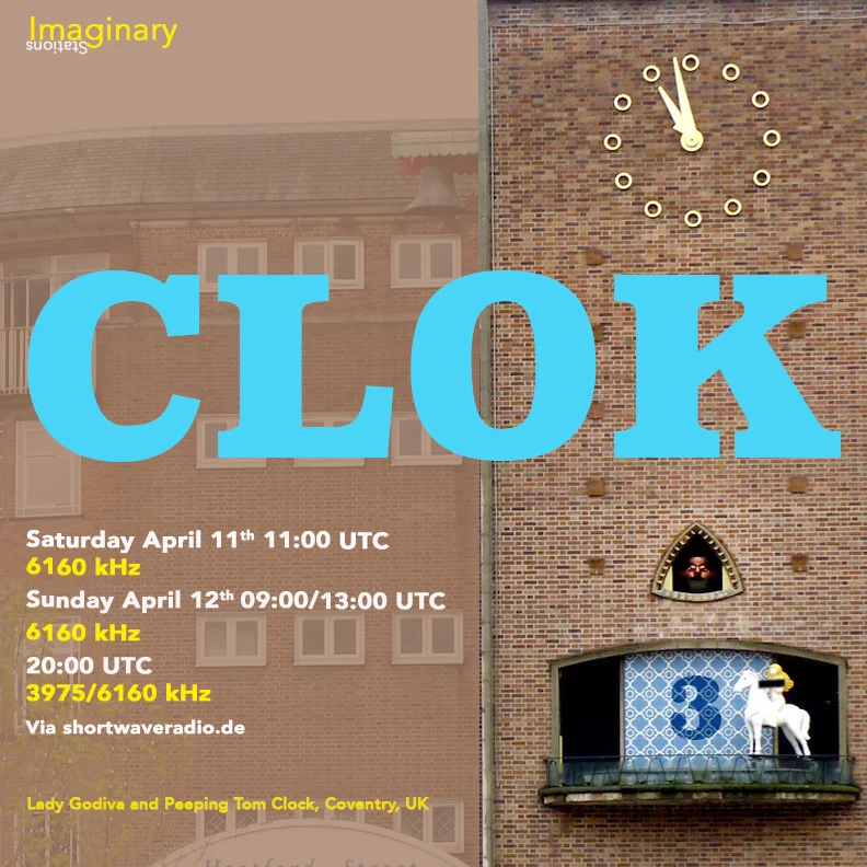O coletivo Imaginary Stations anuncia mais um episódio de CLOK, um programa em homenagem ao conceito do tempo transmitido em ondas curtas. A primeira emissão acontece no sábado, 11 de abril, às 11:00 UTC na frequência 6160 kHz. Haverá novas transmissões no domingo, 15 de abril, às 09:00 e 13:00 UTC também em 6160 kHz, e às 20:00 UTC em 3975 kHz/6160 kHz via os serviços da Shortwave Gold.