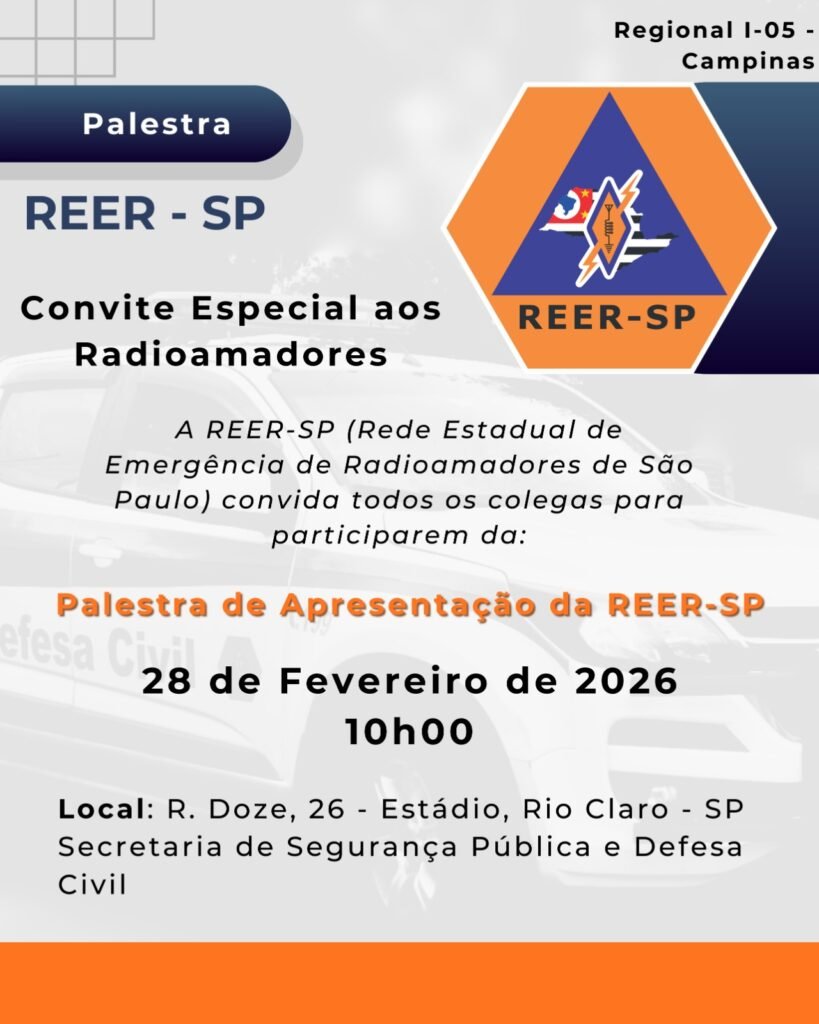 A REER-SP (Rede Estadual de Emergência de Radioamadores de São Paulo), através da sua Regional I-05 (Campinas), tem o prazer de convidar todos os operadores e entusiastas do rádio para participar do nosso ciclo de palestras de apresentação.